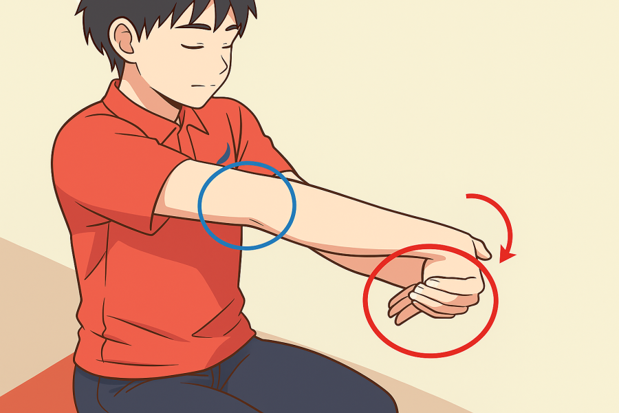 2)肘を曲げて、手首だけをゆっくり「下げる」