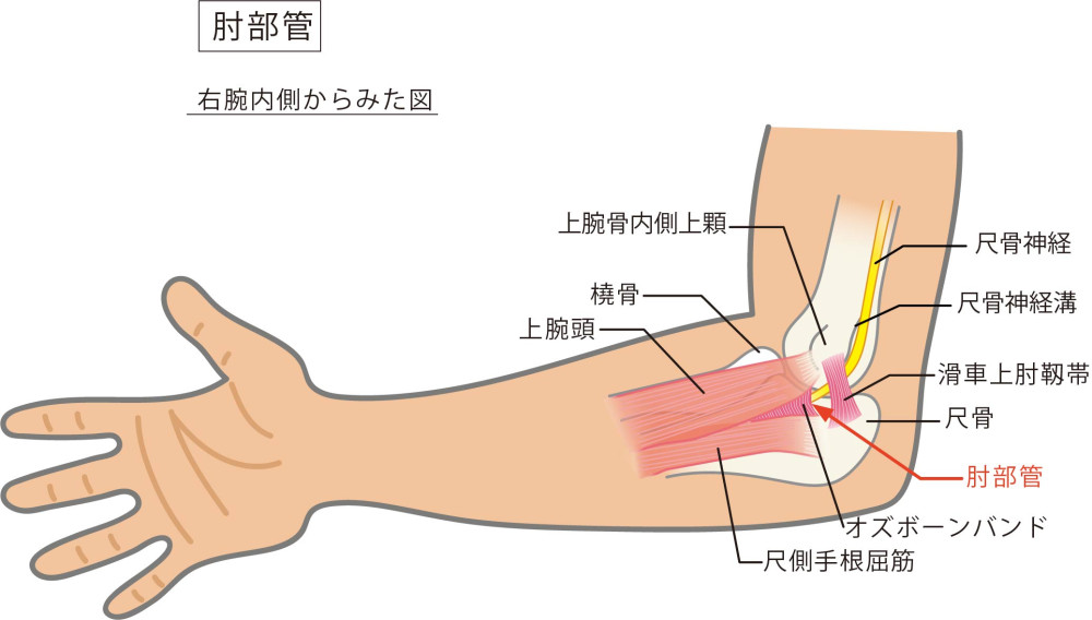 肘の内側で神経(尺骨神経)が圧迫される、神経障害の中で 手根管症候群に次いで2番目に多い